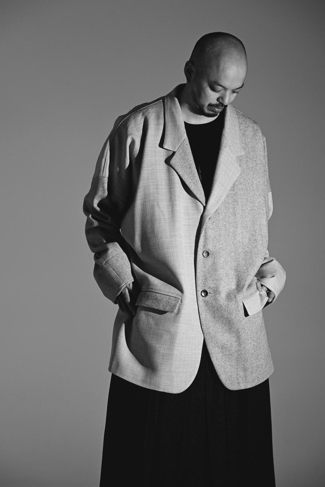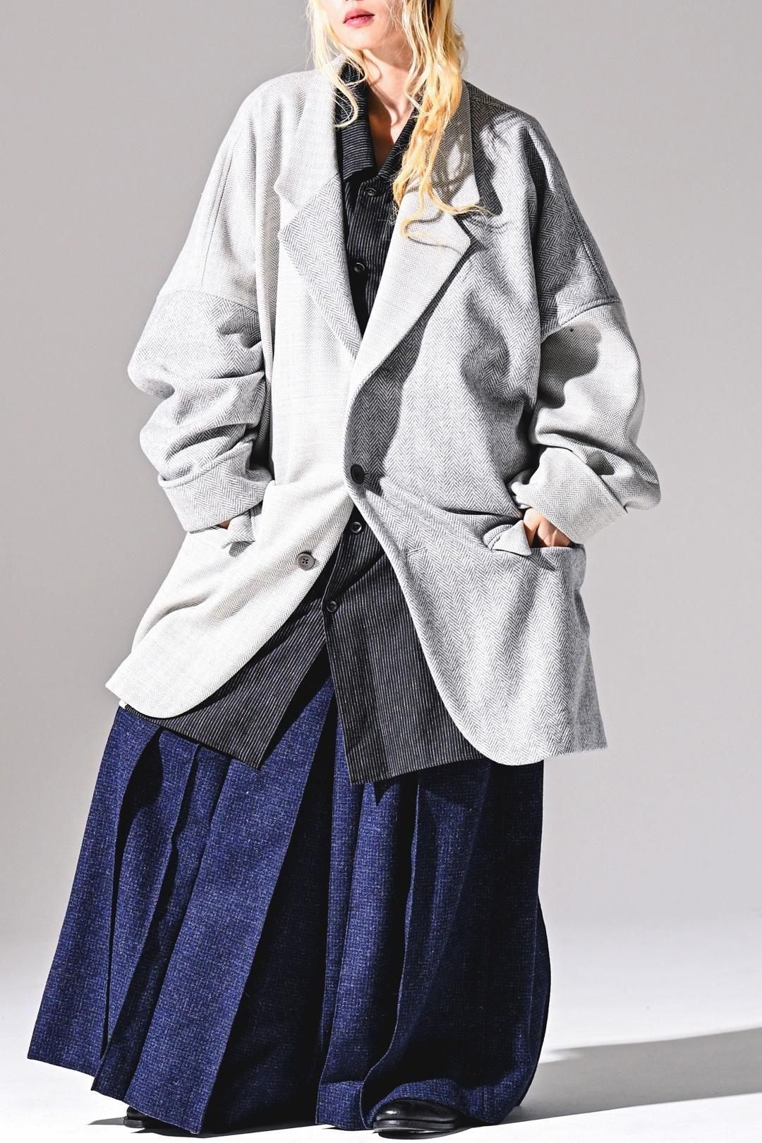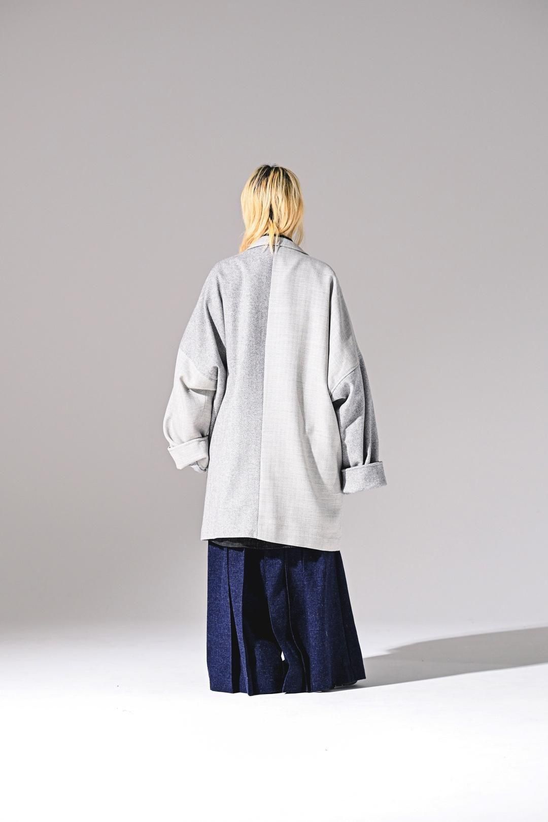 高級毛織物の産地"尾州"産の上質なウールヘリンボーン生地で仕上げたビッグジャケット。