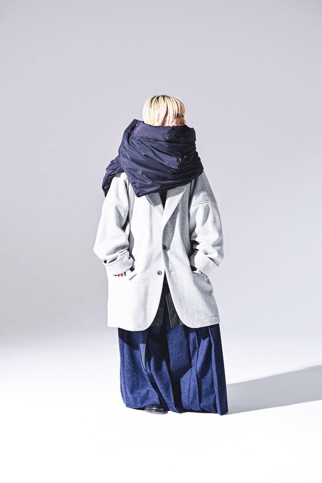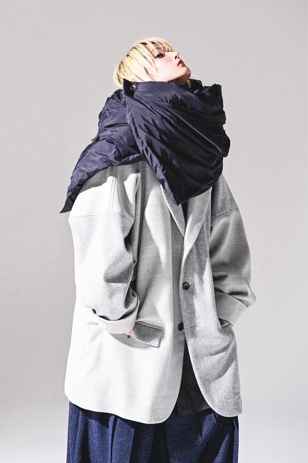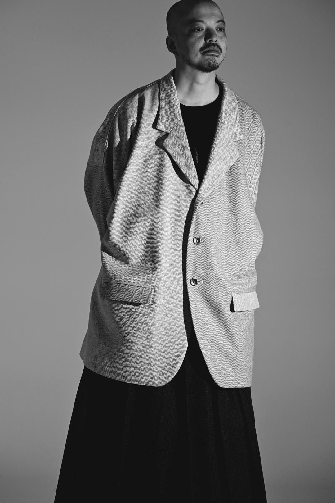 高級毛織物の産地"尾州"産の上質なウールヘリンボーン生地で仕上げたビッグジャケット。